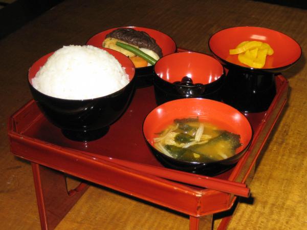 仏さまに供えるご飯を「霊供膳」(「りょうぐぜん」「れいくぜん」などと読みます。)といいます。宗派やお寺によって多少異なりますが、臨済宗はおおよそ以下のとおりです。ふたを取ってお供えします。お膳の向きは、仏さまに食べていただくように、箸(はし)のあるほうを仏さまに向けてお供えします。